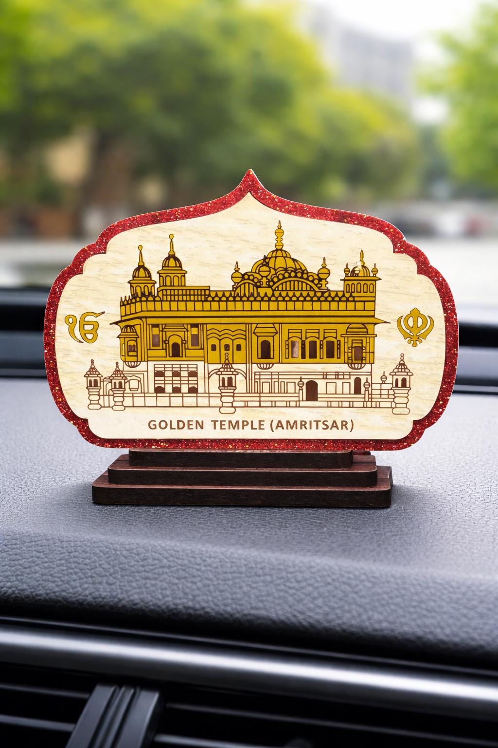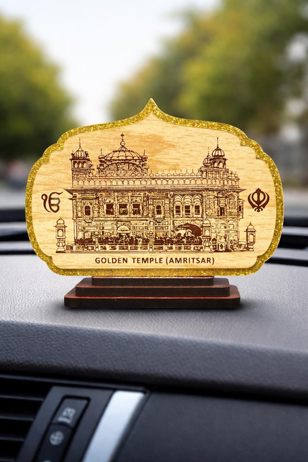 Beautiful finished car dashboard idol made of wood.
