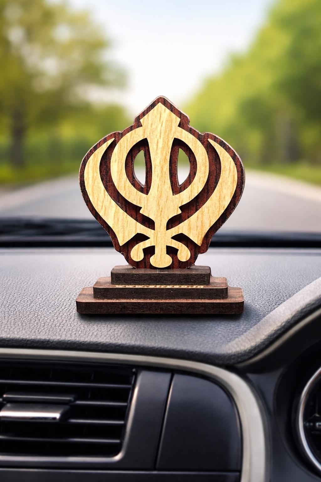 Beautiful finished car dashboard decor made of wood.