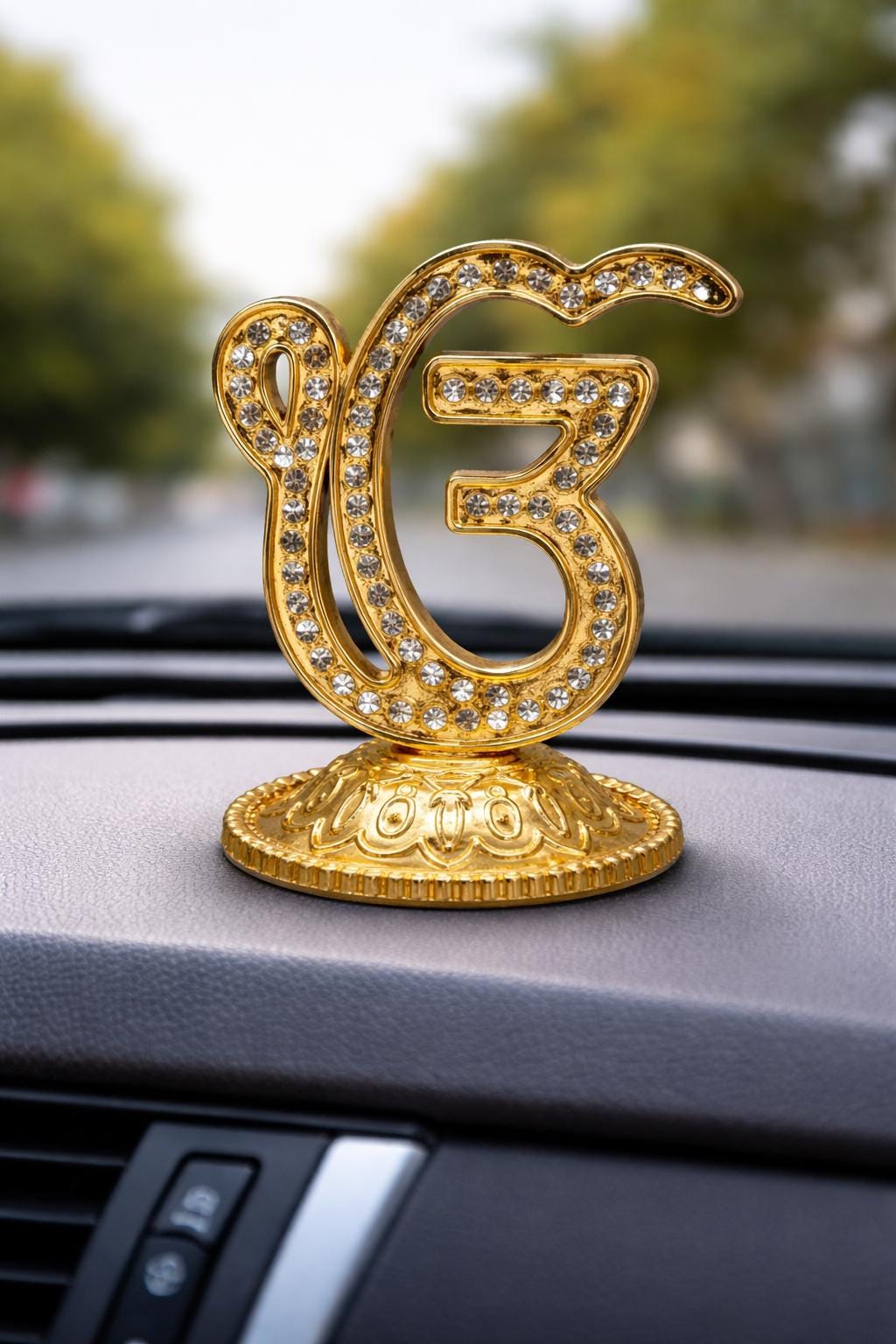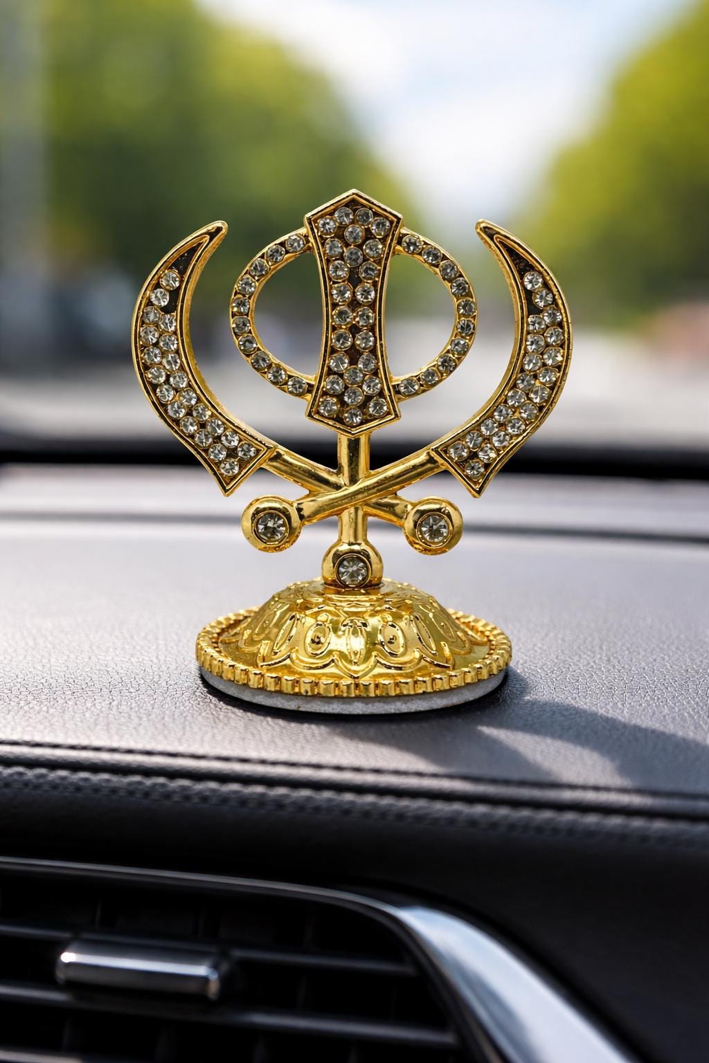 Beautiful finished Khanda and Ek Onkar made of metal with heavy base.