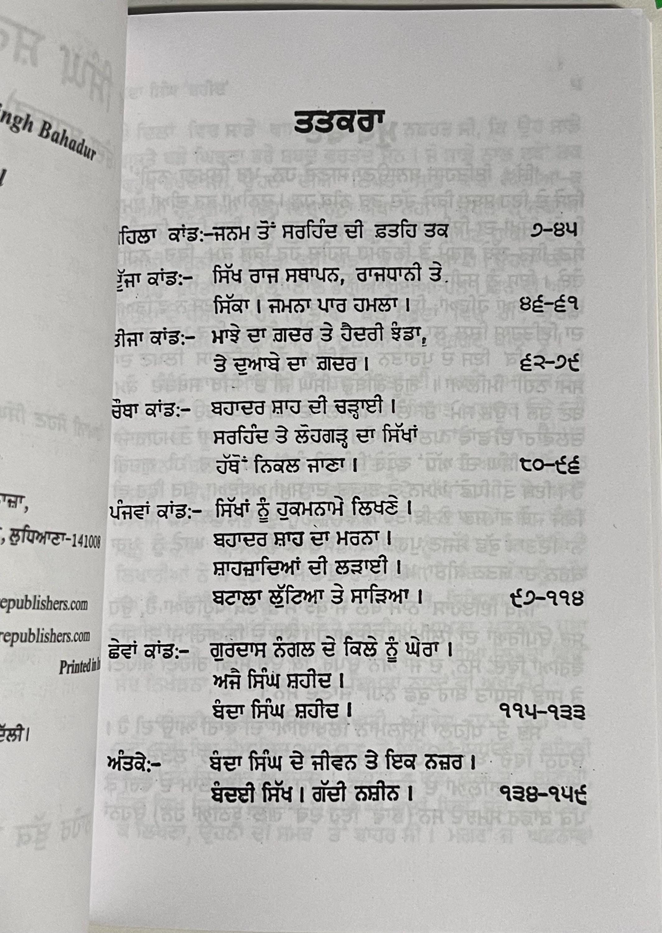 Baba Banda Singh Bahadur Sikh History Book – Punjabi Sikh Biography